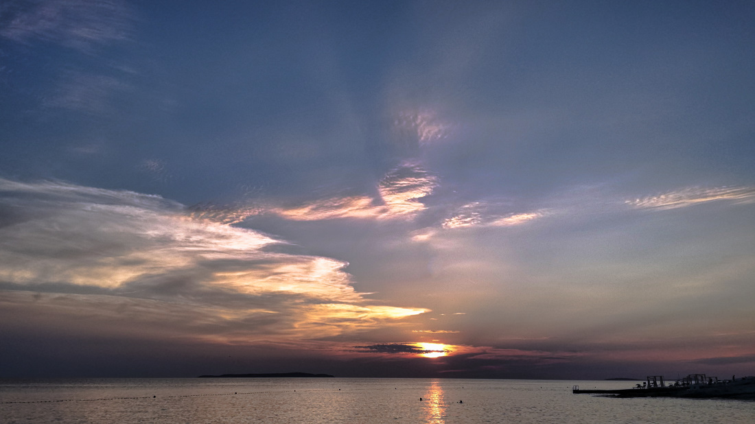 Orizzonte corretto , composizione efficace, che esalta la ariosità della scena, che, pur vuota di elementi specifici, basta a se stessa fra colori tenui e sfumature. Naturalmente la sottile presenza della lingua di sabbia a destra, addirittura con alcuni ombrelloni o sedie a sdraio leggibili in silhouette, e la isoletta al largo, completano bene lo scenario. La semplicità, e la correttezza di contrasti, alla fine ripagano ampiamente.