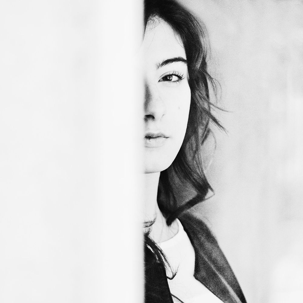 Lo sguardo é quieto, come in attesa di un cenno ,che deve giungere dal fuori campo. Un volto che si affida alla tua regia ,con calma aspettativa. Sta in bilico fra la delicatezza del grigio e l' incognita vasta del bianco. E ogni equilibrio dipende dal mondo a cui il suo sguardo si rivolge. Chiede di uscire dallo stallo, e questa muta domanda, per me ,crea il fascino del ritratto.
