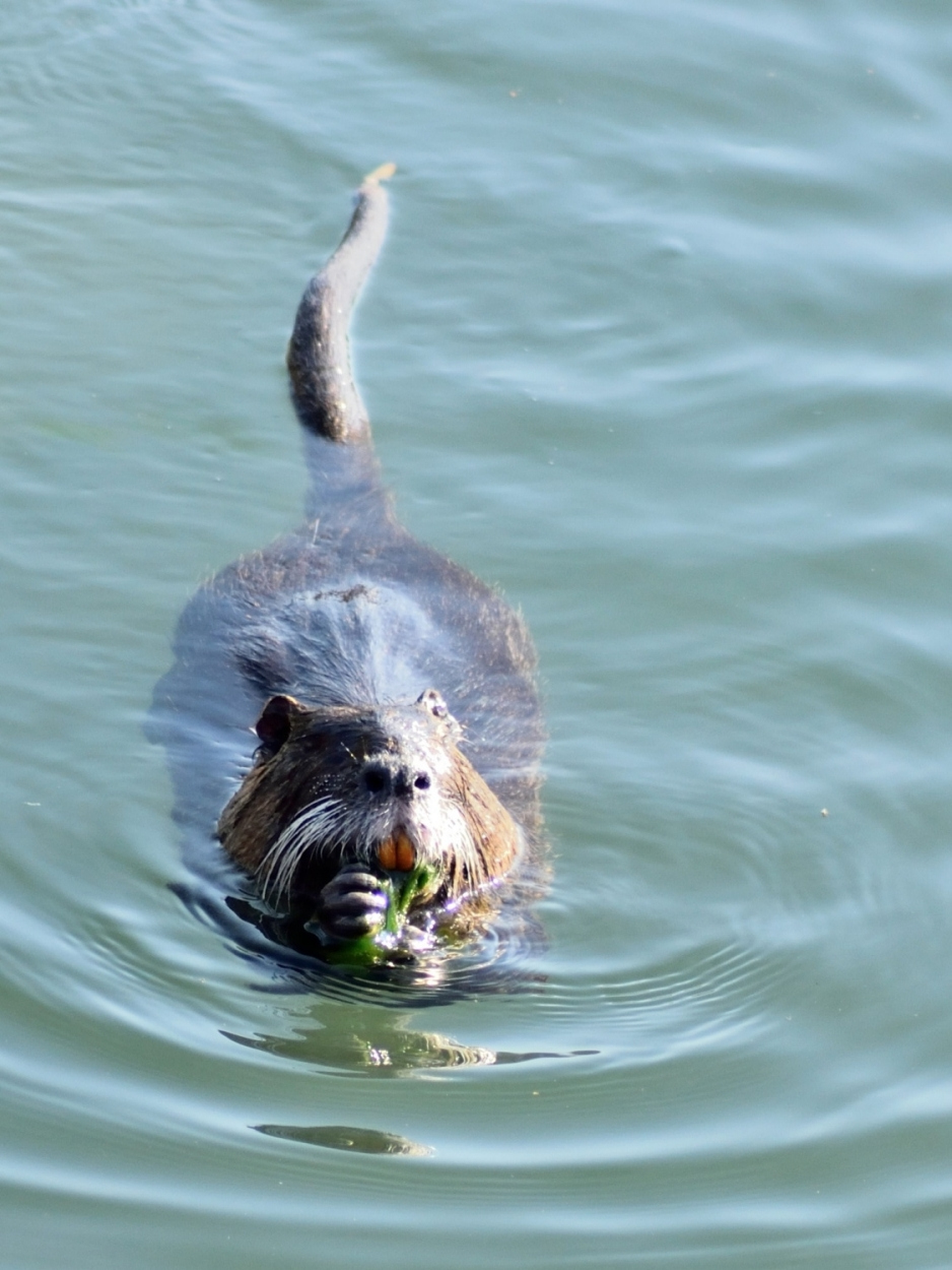 Ho fotografato un'altra nutria mantenendomi a pelo d'acqua, ma in questo caso volevo mostrare la parte subacquea, perchè mantenendomi frontale non vedevo bene l'alga e i dentoni.