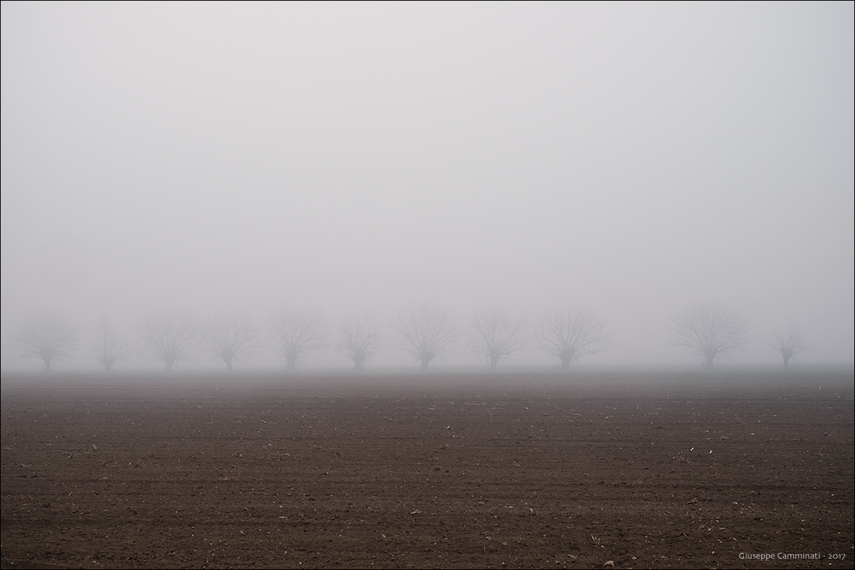 Fortemente suggestiva questa teoria di alberi confusi nella nebbia,sembrano realmente fantasmi che si affaciano dal limitare di un'altra dimensione,grande atmosfera ed ottima composizione.