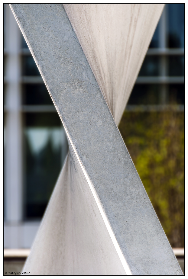 Il punto di ripresa e lo schiacciamento prospettico operato dal tele generano una figura enigmaticamente simbolica,rigida e materica sul primo piano che poi si ammorbidisce fino al piacevole sfocato.Molto bello ed adeguato il colore che ci accompagna in questa fuga all'indietro. Ciao