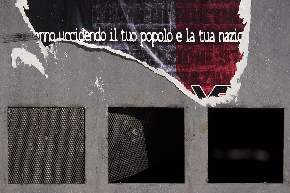 Quasi una citazione rotelliana in cui la pregnanza del testo si abbina al degrado su cui il manifesto si poggia.