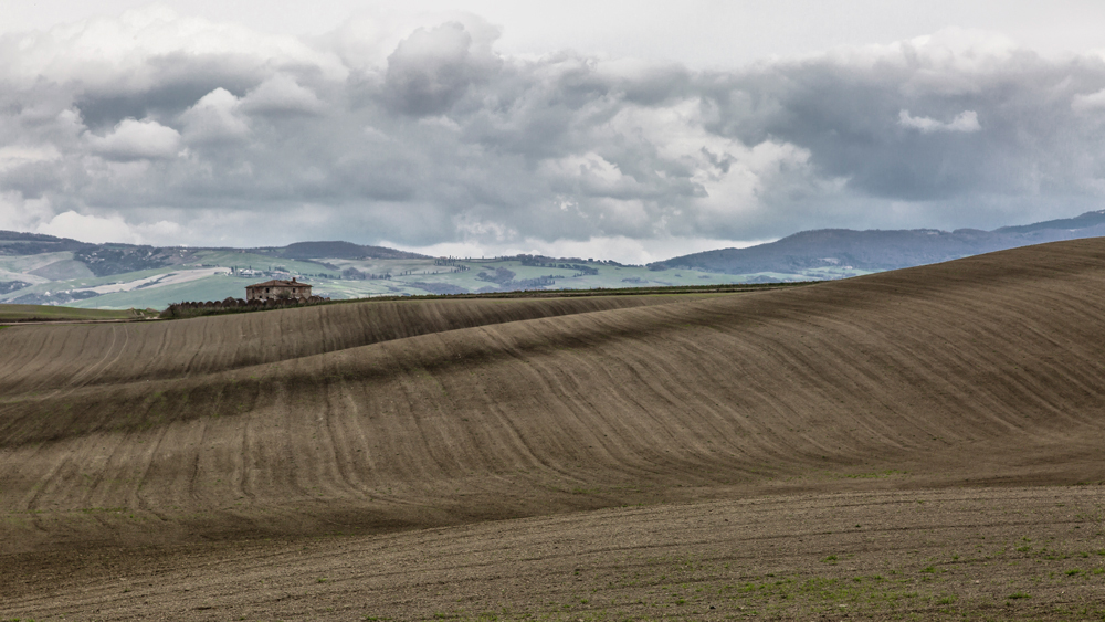 un bel paesaggio, cielo ricco di nubi, ben composta. Manca solo un po' di mordente. Cielo troppo schiarito ?