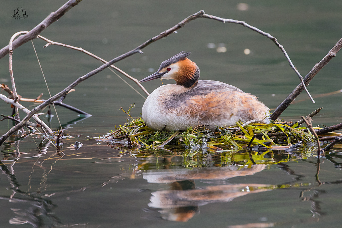 lo svasso ha costruito questo nido in piena vista a 7 metri dalla sponda di una pista ciclabile/pedonale più frequentata dell'autostrada del sole a ferragosto.... se non si sente disturbato lui forse abbiamo un concetto di "disturbo" un filo distorto