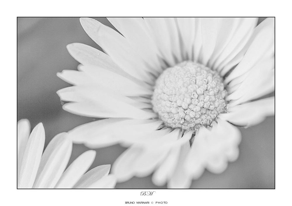 Per me sono molto valide tutte e due le immagini, la maf selettiva sul bottone della margherita ed i petali che sembrano sfiorarsi come le dita di una mano. Proverei a contrastare maggiormente quella in BN che è la versione che preferisco tra le due. Davvero uno scatto interessante.