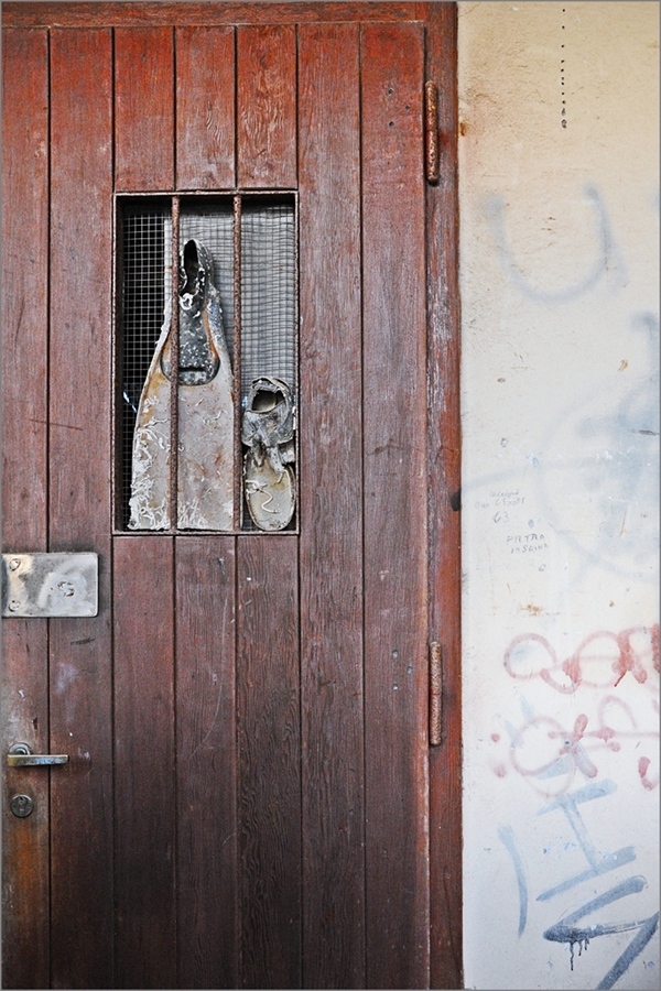 Grazie Giancarlo,Lodovico,Federico e Bruno per i graditissimi commenti.Uno scatto realizzato in bassa luce,dopo il tramonto,sotto un porticato,con la Nikon D90 a 1600 iso.La porta è di un deposito di pescatori.M avevano colpito questi due reperti,corrosi e pieni di incostrazioni,esposti come trofei e sicuramente ritrovati nelle reti insieme ai pesci.