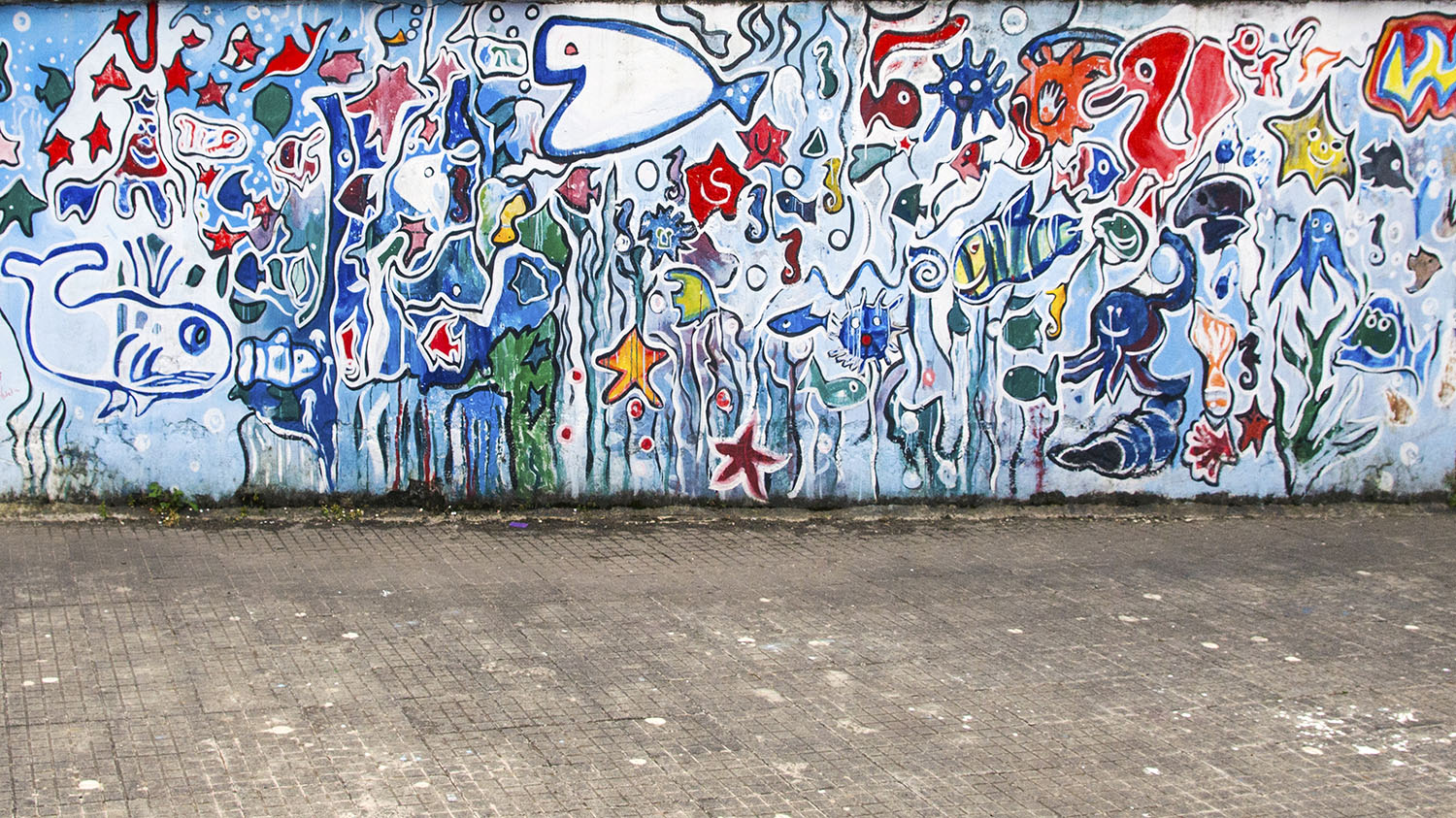 Vivace e ben esposto, eppure hai lasciato una generoso piede di realistico grigio , ad ambientare i murales, e a preservare serietà fotografica alla proposta complessiva !