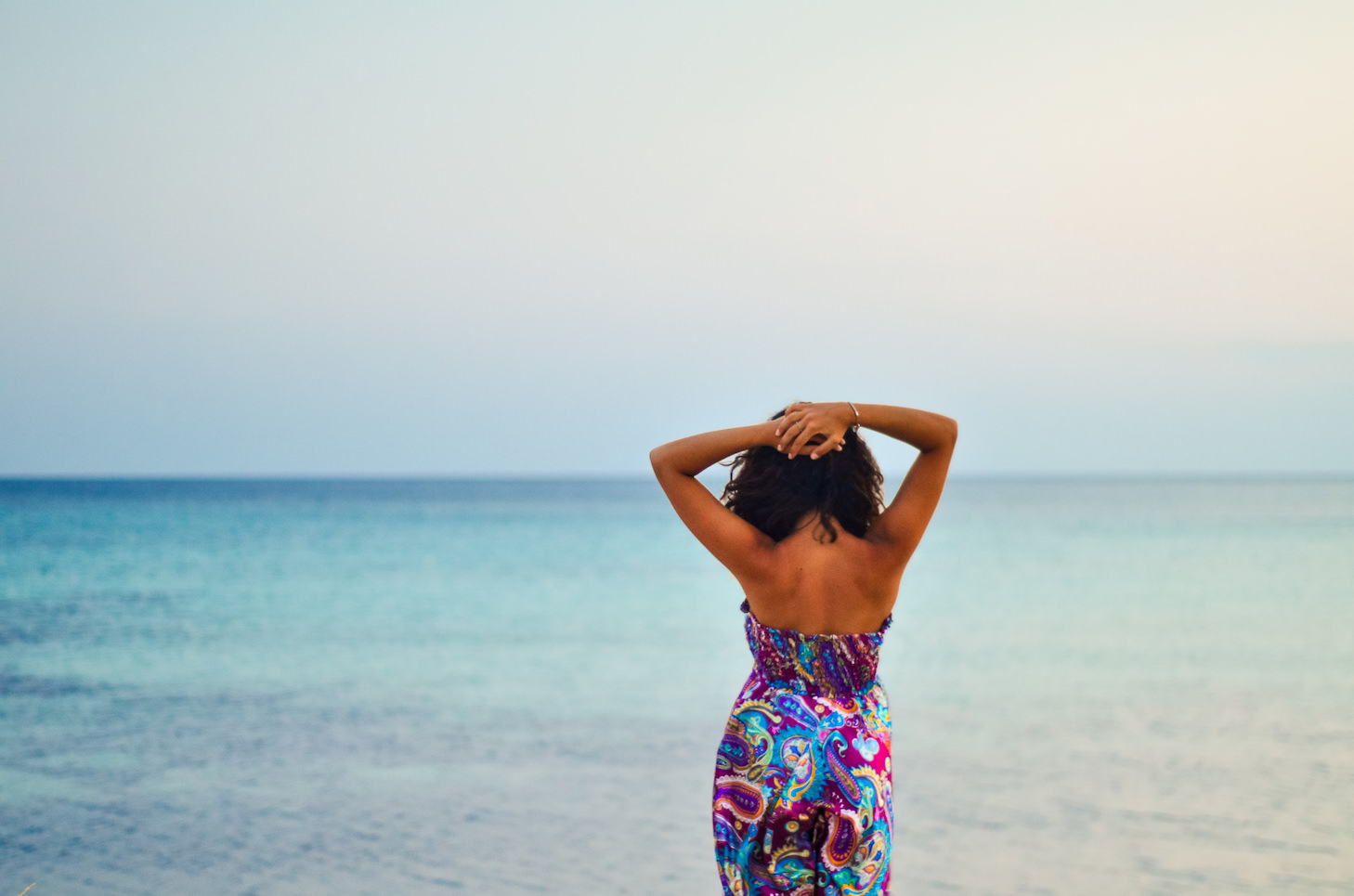 mi sto chiedendo come ricomporre questa foto l'orizzonte è "quasi" centrale, ma avrei voluto 2terzi di mare visto che il cielo è vuoto?, la fanciulla "quasi" centrale, ma avrei voluto un maggior decentramento a destra?