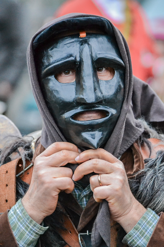 ho anche provato la conversione in BN, ma il risultato non mi è piaciuto, non essendo riuscito a eliminare quella patina lucida sul nero della maschera; il risultato era un'immagine piatta e grigiastra, senza alcuna plasticità né forza (tutto nasce da un vizio originario secondo me, vale a dire ISO troppo alti).