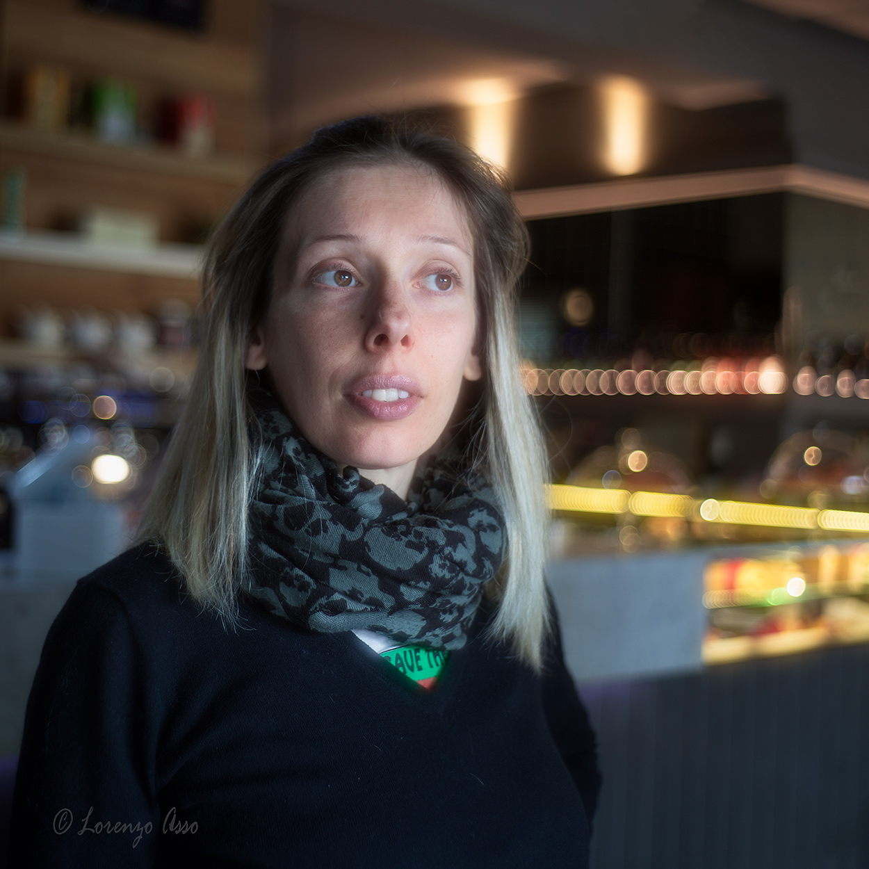 Fuoco selettivo... bellissima luce ed uno sfocato talmente bello da rubare quasi la scena... e comunque in qrmonia con gli occhi bellissima della ragazza.