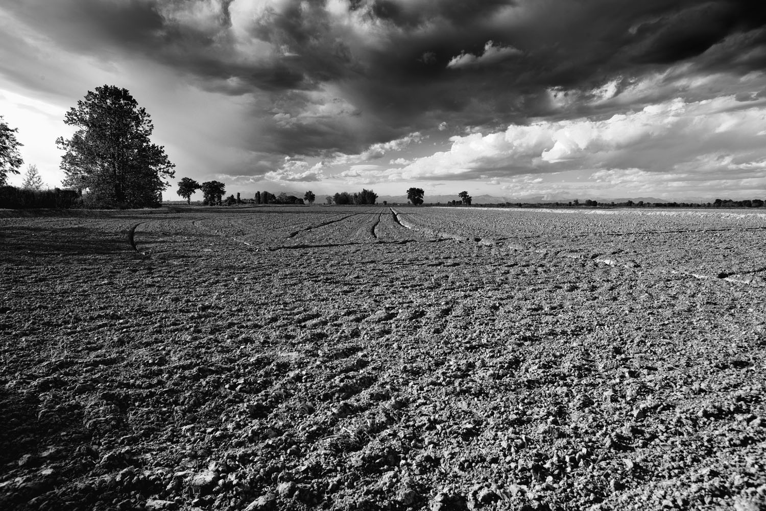 Bella la profondita' data dal perdersi in lontananza dei solchi del terreno e dalla particolare conformazione delle nuvole ben messa in evidenza dalla composizione. Il bn pure mi sembra bellissimo.