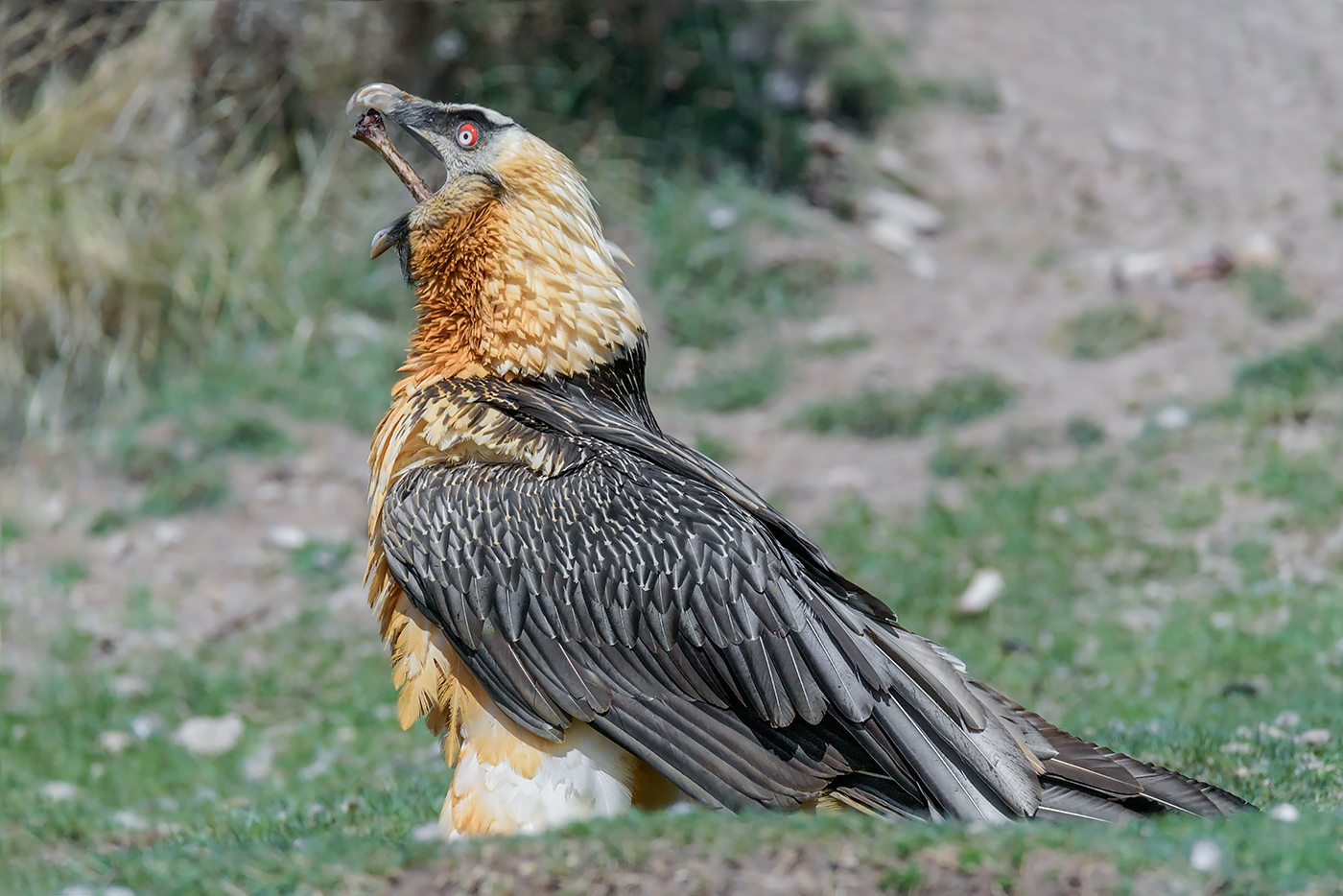 Bellissima immagine,ottimo momento colto e molto interessante la spiegazione!Fa un poco impressione come stia cercando di mandare giù quell'osso ,ma dev'essere stato un avvistamento davvero spettacolare.Complimenti!