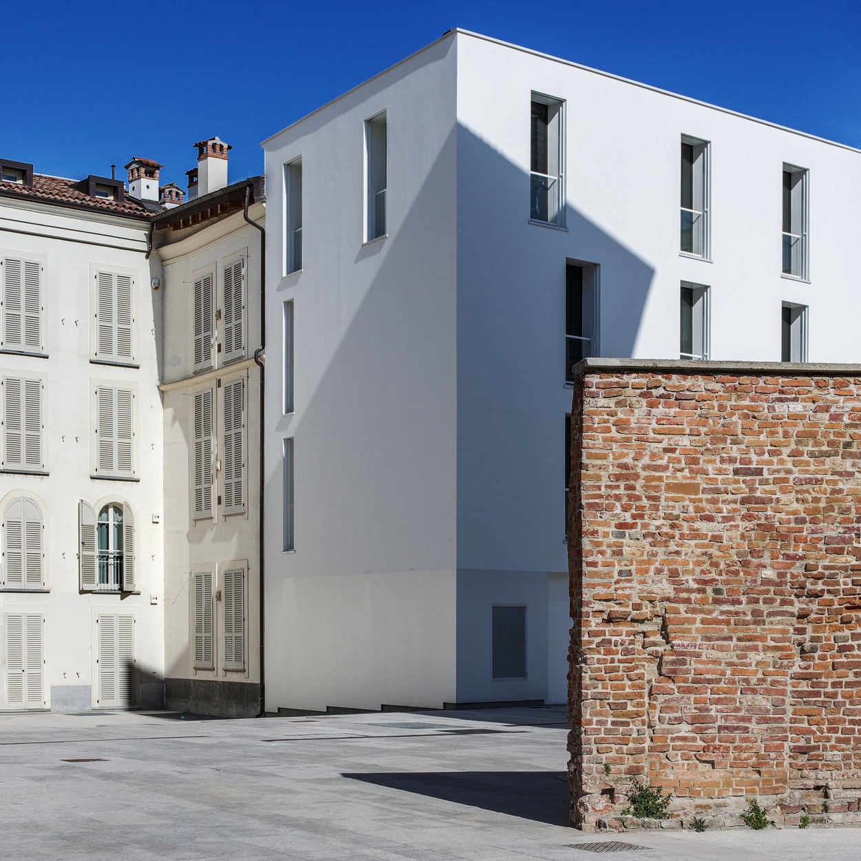 Davvero bella, le forme geometriche spigolose riempiono uniformemente il fotogramma. Mi colpisce l'ombra sul palazzo, non riesco a capire da cosa possa essere generata.