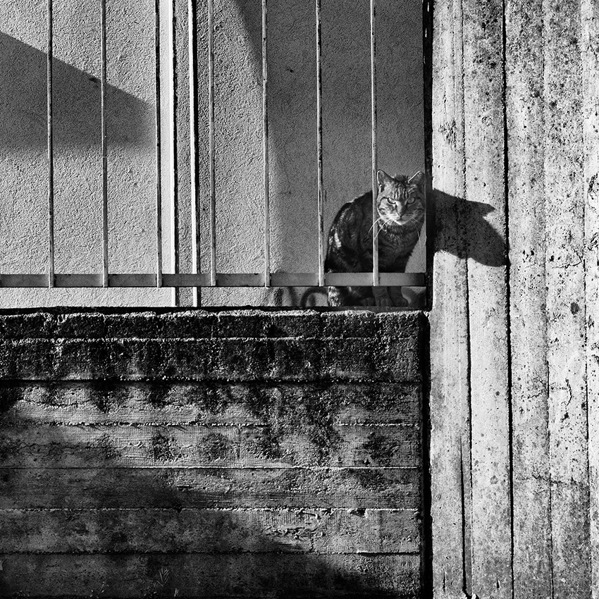 Molto bella l'espressione del gatto, che emerge in questo gioco di linee verticali e orizzontali. Mi piace molto il taglio quadrato. Ok! Ciao