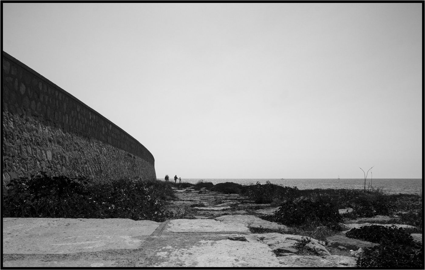 Buono il punto di ripresa che accentua la distanza del piccolo gruppo,ai confini di questo paesaggio di pietre ed acqua.Ottimi anche bn e composizione. Ciao