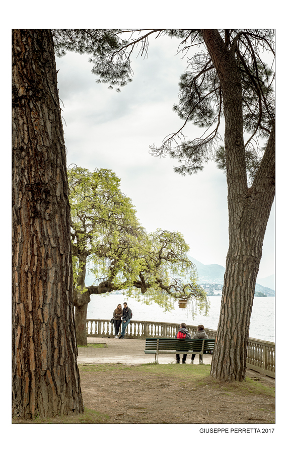 Due alberi che fungono espressamente da cornice in una scena intima, silenziosa e di grande intensità. Intensità accompagnata d questa luce forte , quasi a proteggere scaldando le persone nonostante l'inverno non sembra ancora lasciarli definitivamente. Una bella scena Giuseppe in una composta composizione e piacevole definizione .