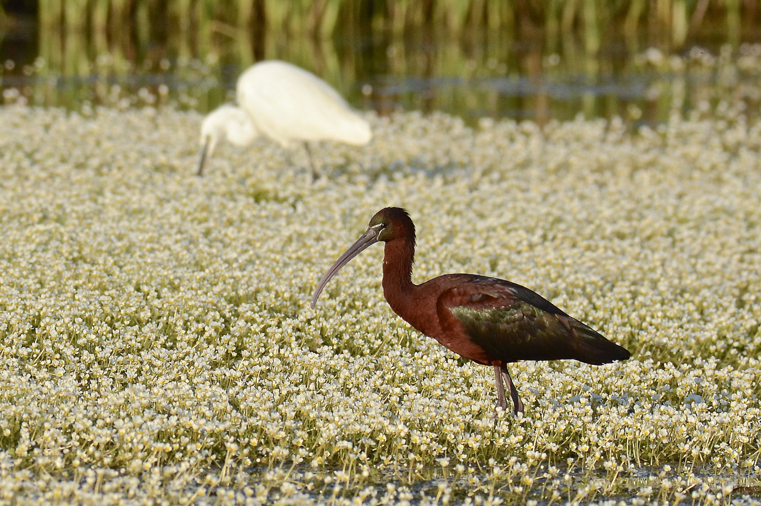 Bellissima! Non ho mai visto un mignattaio, ha dei colori splendidi. Non ti sei fatto mancare neanche l'airone sullo sfondo.