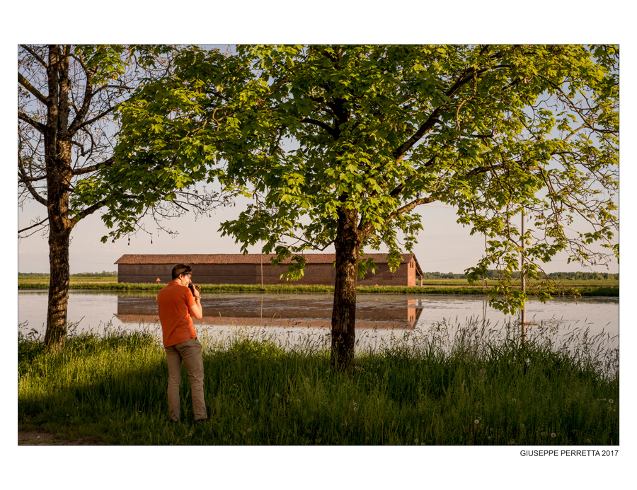 Uno dei tuoi classici e luminosi paesaggi alberati, a seguire colori e luci del fiume, e della pianura che ben conosci. E Luca, come valore aggiunto. eheh che vediamo in azione, in tutto relax, che si integra con una bella polo arancio, quasi in tinta con lo sfondo della tua ripresa...