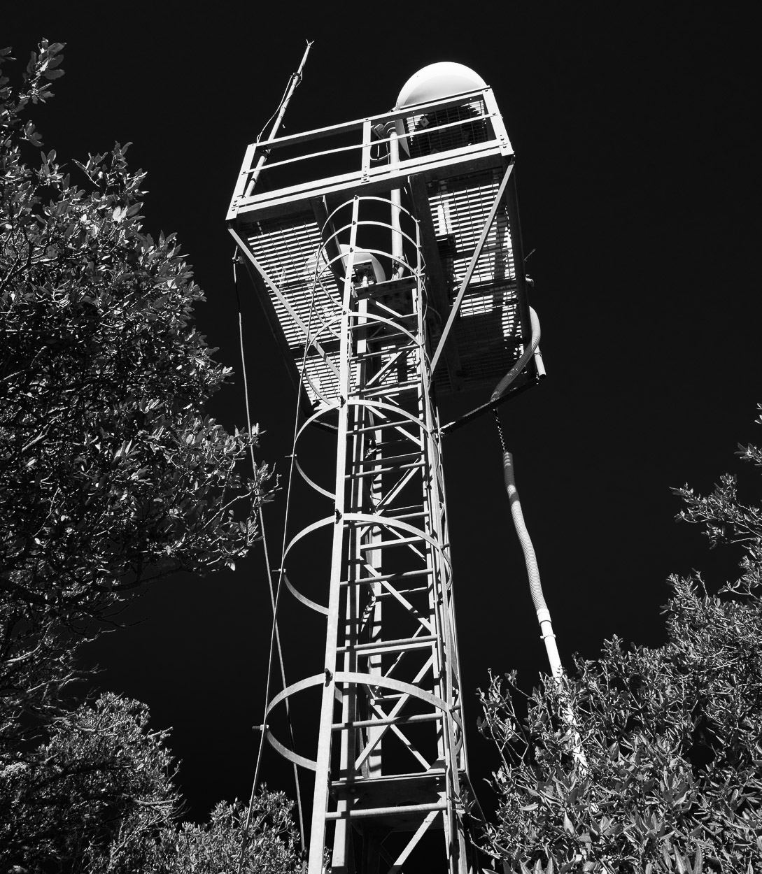 Cielo nerissimo e struttura metallica di un biancore allucinante.