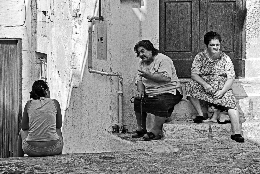 Una immagine veramente notevole, per i volti e i luoghi che sembrano d'altri tempi, e le espressioni che hai saputo cogliere, micio compreso,