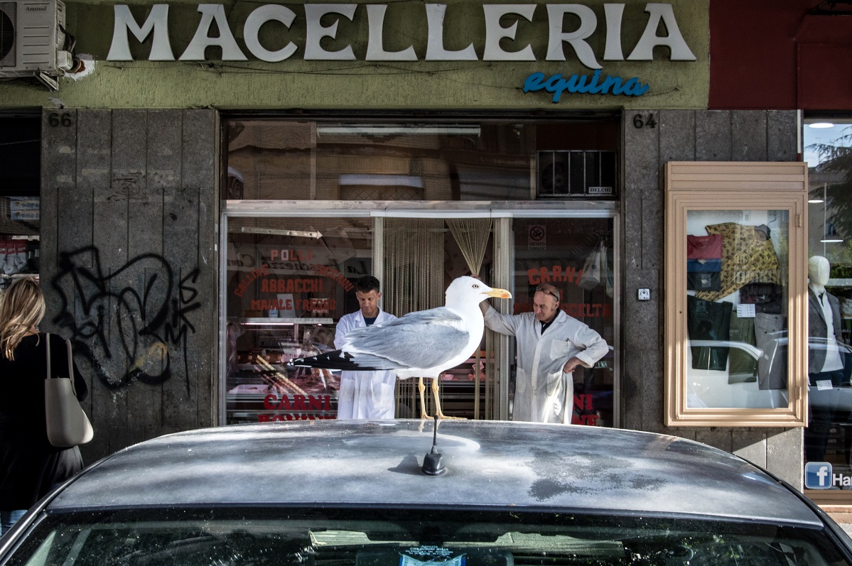 Onorato Sergio! L'ispirazione me l'hai data tu! I due macellai guardavano un altro gabbiano, che si era spinto fino all'uscio del negozio! LOL