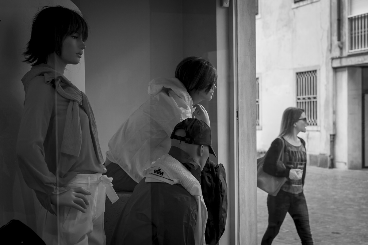 Ruoli invertiti:questa volta sono i manichini che osservano i passanti!Ottimo punto di ripresa,bello scatto! Ok! Ciao