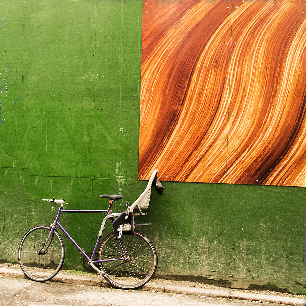 Quando ho "visto" questa immagine avrei voluto spostare la bici di qualche cm in modo che il seggiolino combaciasse con la fine del dipinto, ma, trovandomi all'estero, avevo paura che mi scambiassero per una ladra di biciclette e ho lasciato perdere