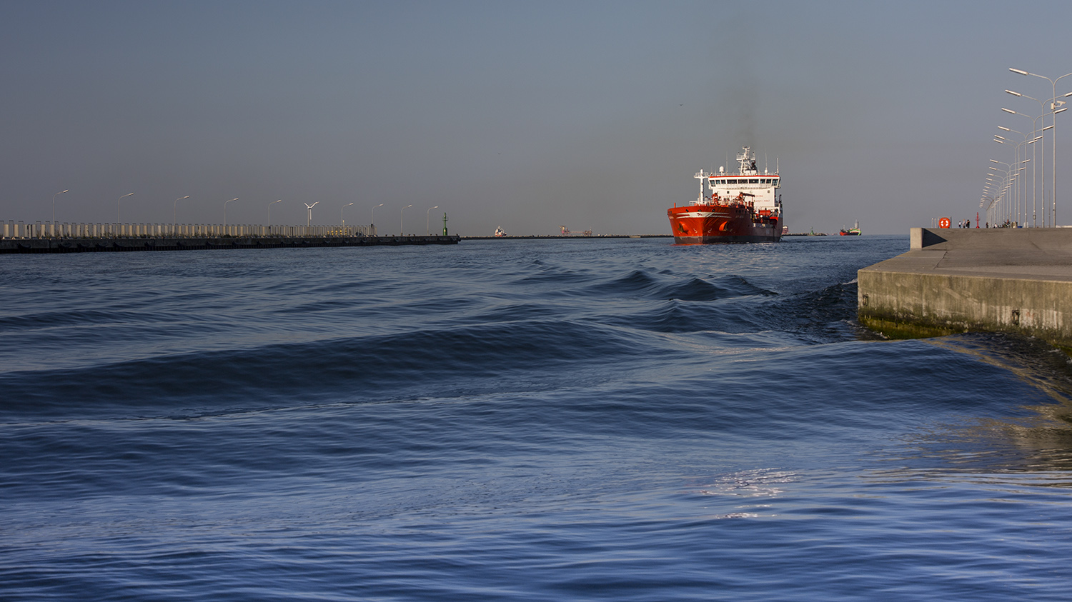 Per il resto, stupendo l'impatto della base azzurra di acqua, mossa dalla dinamica molle di un' onda lunga. Il rosso dello scafo in transito, lo sbuffo scuro dal camino del rimorchiatore, i piccoli ma innumerevoli punti vermigli sparsi nella scena, che sembrano rispondersi tonalmente come echi sonori, danno un bel lustro alla tua proposta.