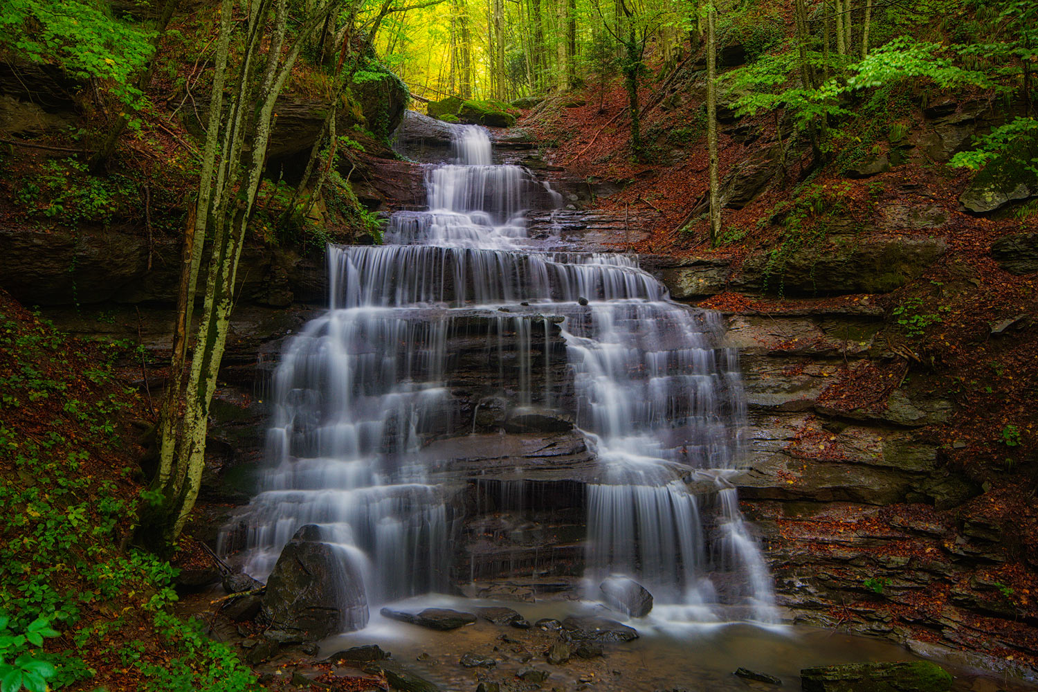 Troppa saturazione, nei rossi e nei verdi, a mio gusto personale (guarda giu' in fondo, all'inizio della cascata).