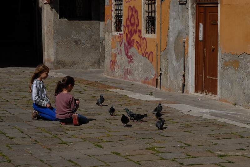 Bimbe e piccioni sono deliziosi da guardare e poi, la naturalezza degli atteggiamenti. Voleva fotografare i piccioni da vicino?