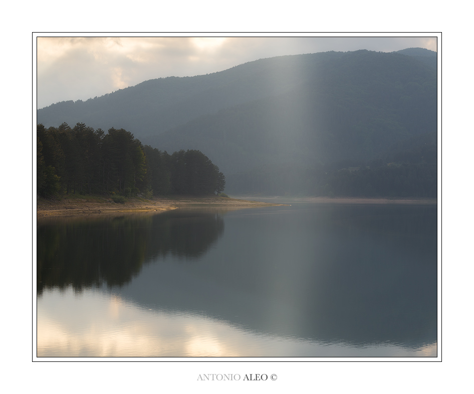 Un raggio di luce atterra sulle limpide acque del Lago Ampollino