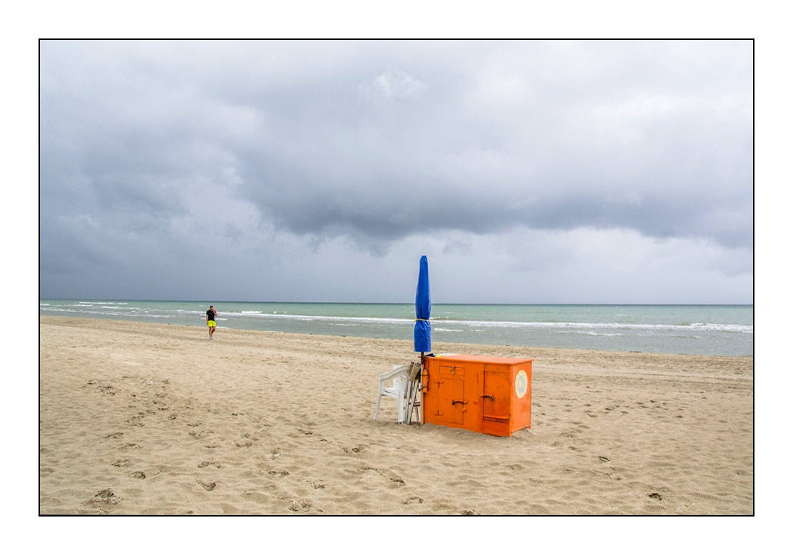 Una pendenza di 0.44 , anche abbastanza evidente ma che io non avevo colto forse ingannato dalla linea retta della sabbia. Eppure questo scatto ha davvero un bel senso ottico e la ripresa la trovo perfetta. Avevo provato anche a croppare con un quadrato ma assolutamente la tua è migliore. Nulla da dire, colori sgargianti , estivi che combattono con questo cielo compromettente. Sembra sentire l'aria fresca sulla pelle .Brava Elis  |