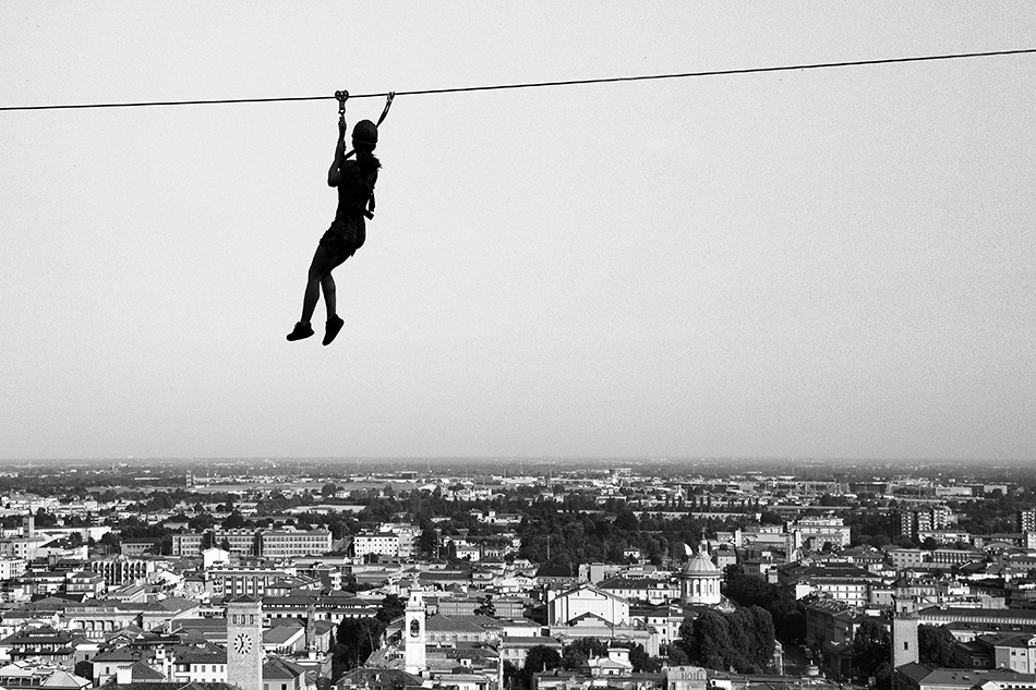 Si è tutto vero, si tratta di una teleferica posizionata sulle mura di Bergamo alta lunga 150 metri, raggiunge un'altezza massima di circa 50 metri e permette di vedere il panorama da un incredibile punto di vista. Devo ammettere però che io mi sono limitato a fotografare!