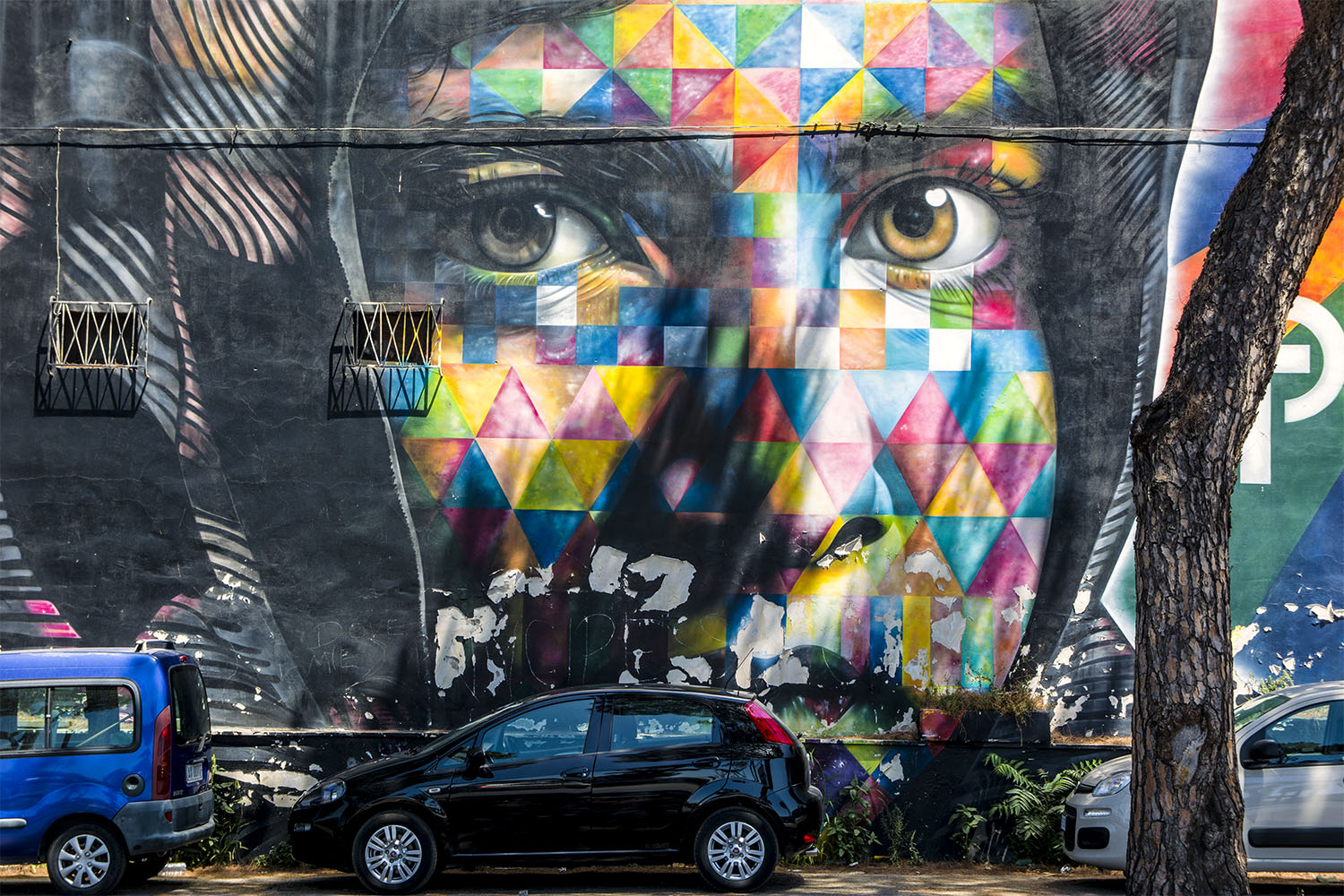 A me piace molto lo scatto, e bellissimo il murales, devo dire che le auto e il resto non mi disturbano, ma fanno da elementi di contorno. Andrea