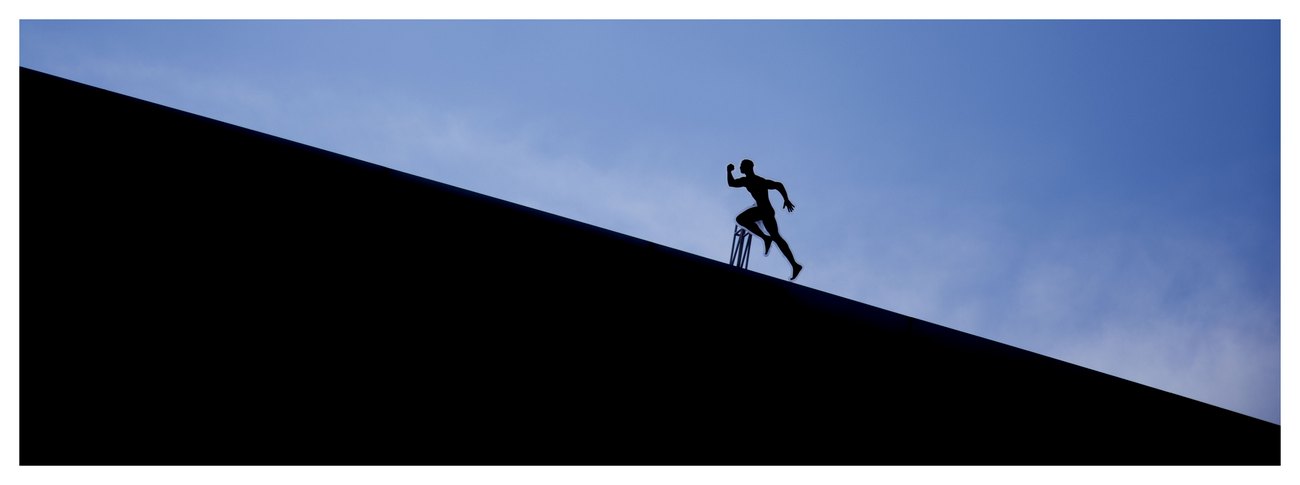 Grafica, iperwide e tagliata asimmetricamente che qui ci sta per non renderla una "bandiera". Bella trovata. Avrei solo schiarito un pelo il cielo per stagliare meglio il "corridore" Smile