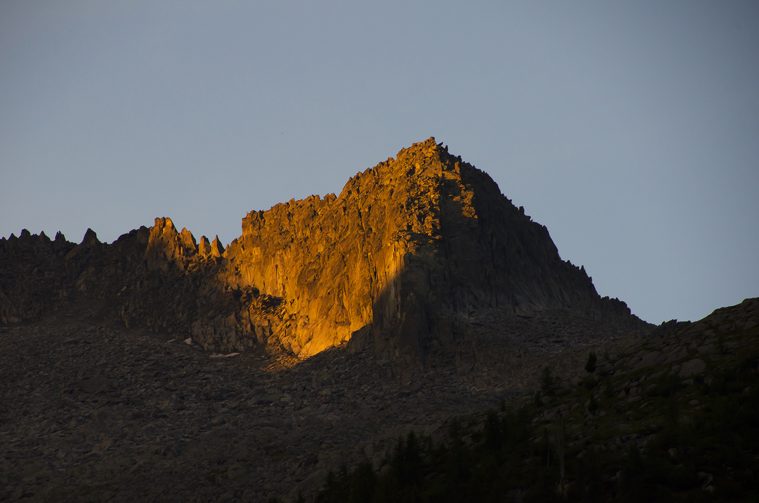Magari non è una foto totalmente attraente, per via delle grandi zone ancora molto scure, di roccia scura (Lagorai?), poco leggibili. Però a me l'immagine dice molto. Mi fa sentire intorno l'aria fresca e pulita del primo mattino, mentre si sta magari salendo procedendo in un sentiero silenzioso, proprio mentre la magia giornaliera del primo sole accende di fuoco amico e confortevole quelle rocce che guardano il cielo. Ciao, Francesco _________________ Fotocamere Olympus OMD e PEN, Panasonic G3. Software GIMP