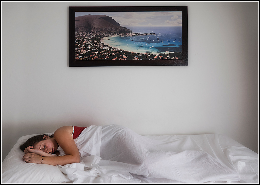 La curva muliebre del corpo dormiente, benedice il racconto, lo ispira ed avvia ad occhi chiusi , sotto l'ampia curva del golfo, che veglia sul suo riposo.