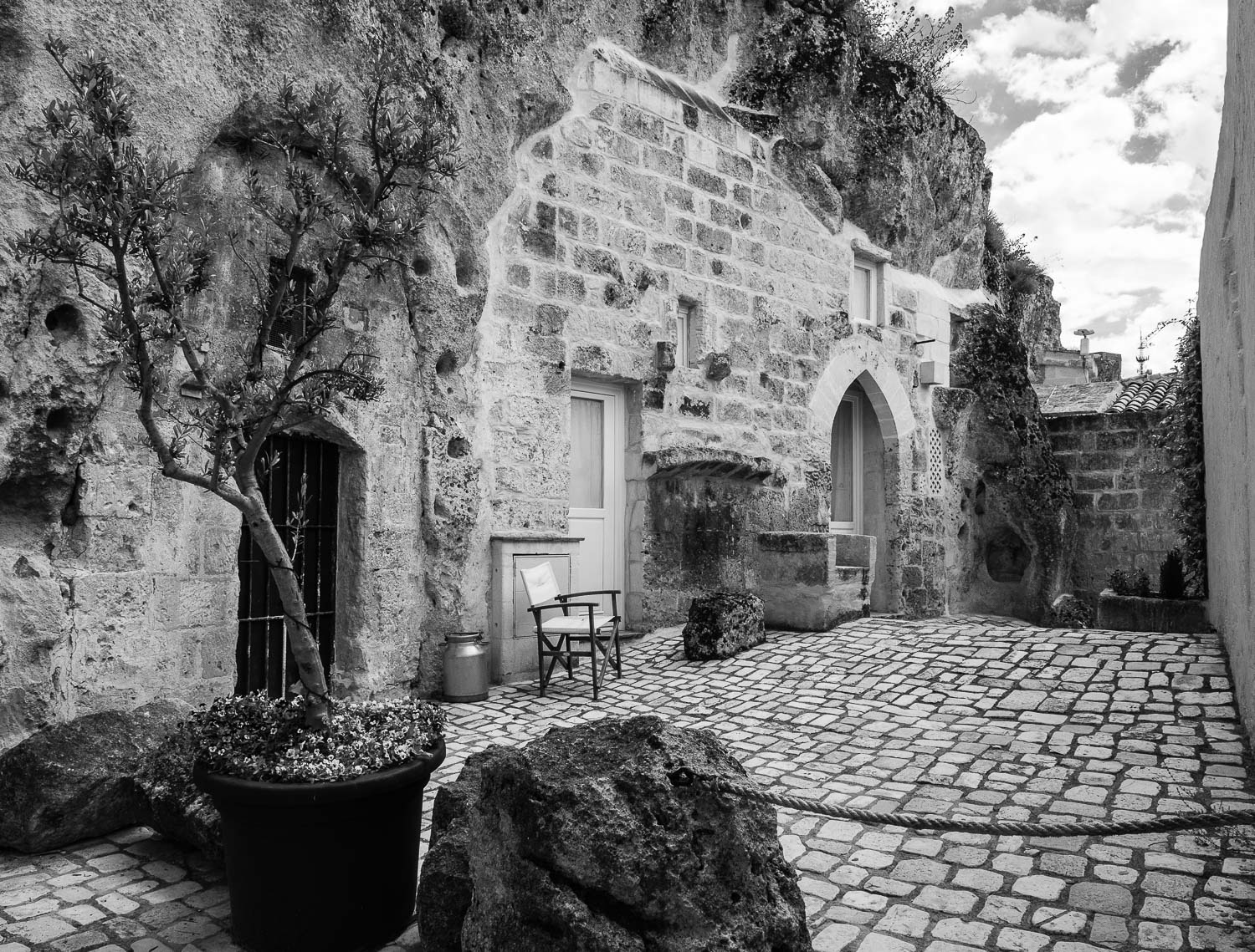 Matera è bellissima e famosissima, ed è soggetta a una fortissima "pressione turistica". Ho inquadrato deliberatamente il cordone di sbarramento (volendo l'avrei eliminato con un crop più spinto, ma avrei anche perso quel delizioso alberello a sx), perché mi trasmetteva l'idea di una muta ma perentoria richiesta di rispetto da parte del proprietario dell'abitazione, la cui privacy era sicuramente violata di continuo dai turisti che, magari, una volta entrati nel cortiletto sbirciavano anche dentro casa...
