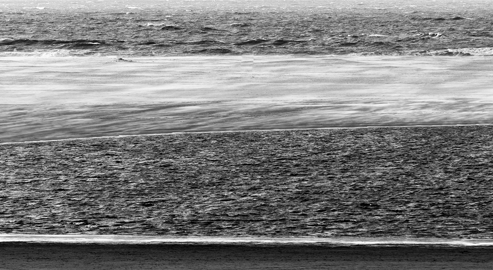 Grafismo terra - mare, solidi e liquidi che quasi di confondono: una compo a fasce, che si fa studio di correnti. Mi piace.