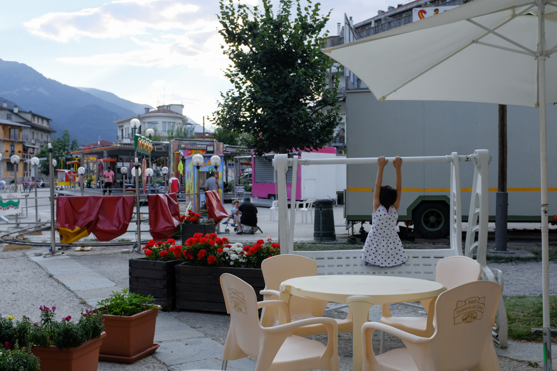 La bimba preferisce un gioco improvvisato a quelli organizzati e forse non in funzione.Uno scatto ricco di elementi ma che si fa esplorare con piacere.L'estate sta finendo. Ok! Ciao