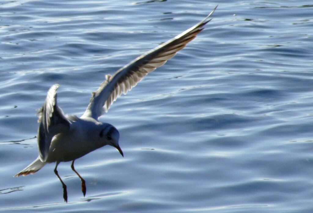 Un gabbiano, colto mentre, con un forte vento alle spalle (come si nota dalle penne scarrufate), si appresta all'"ammaraggio"