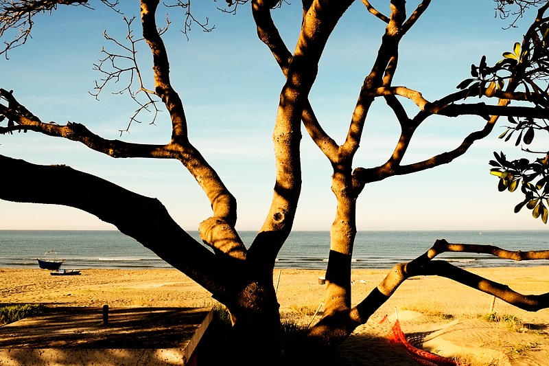Particolare e interessante questa visione, a raggiera i rami cercano di sfuggire verso l'esterno del frame, di fatto riempiendolo, ma si scorge ancora lo sfondo marino. Mi piace.