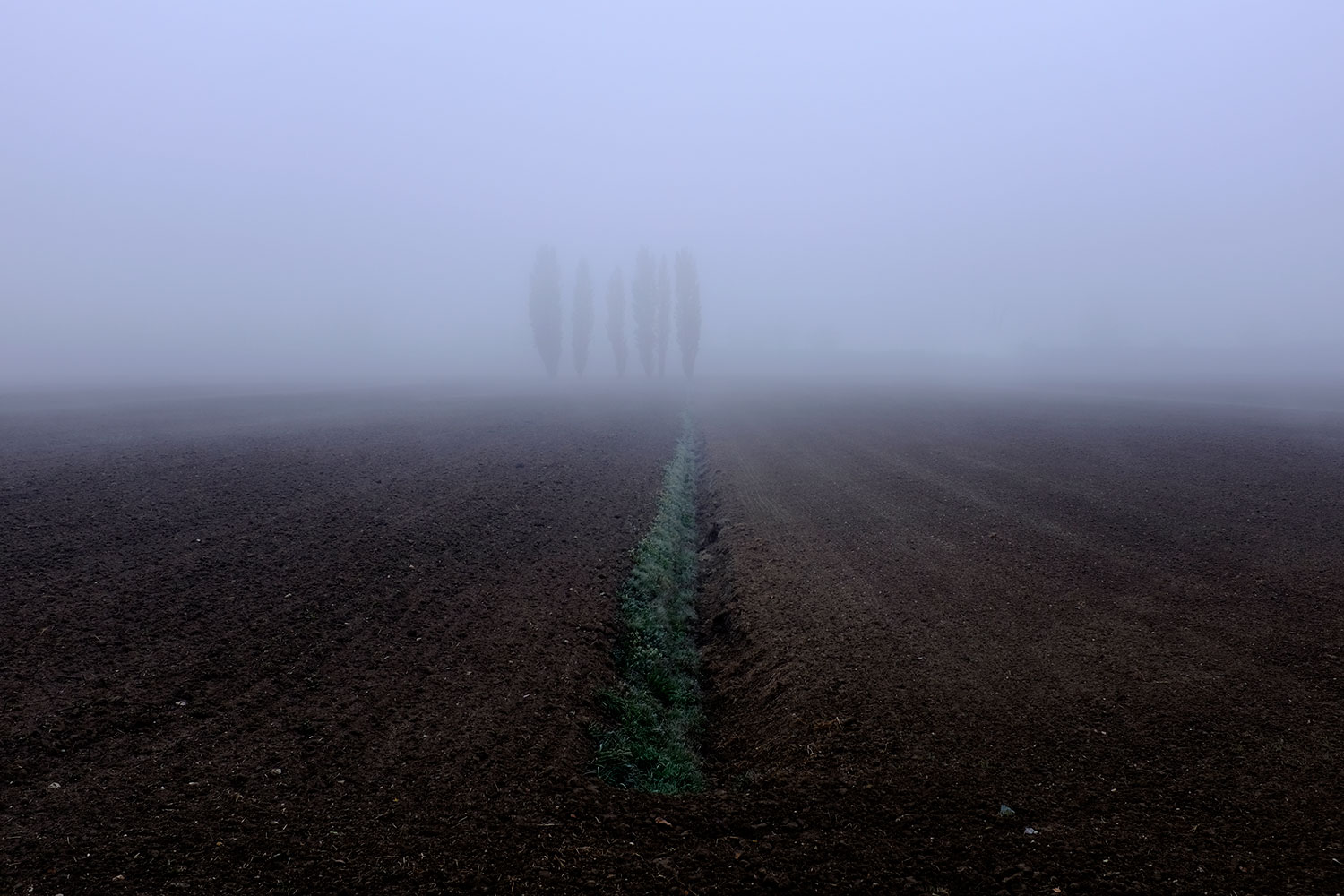 Essenziale. Quella striscia verde, pochi elementi, la nebbia: bella.