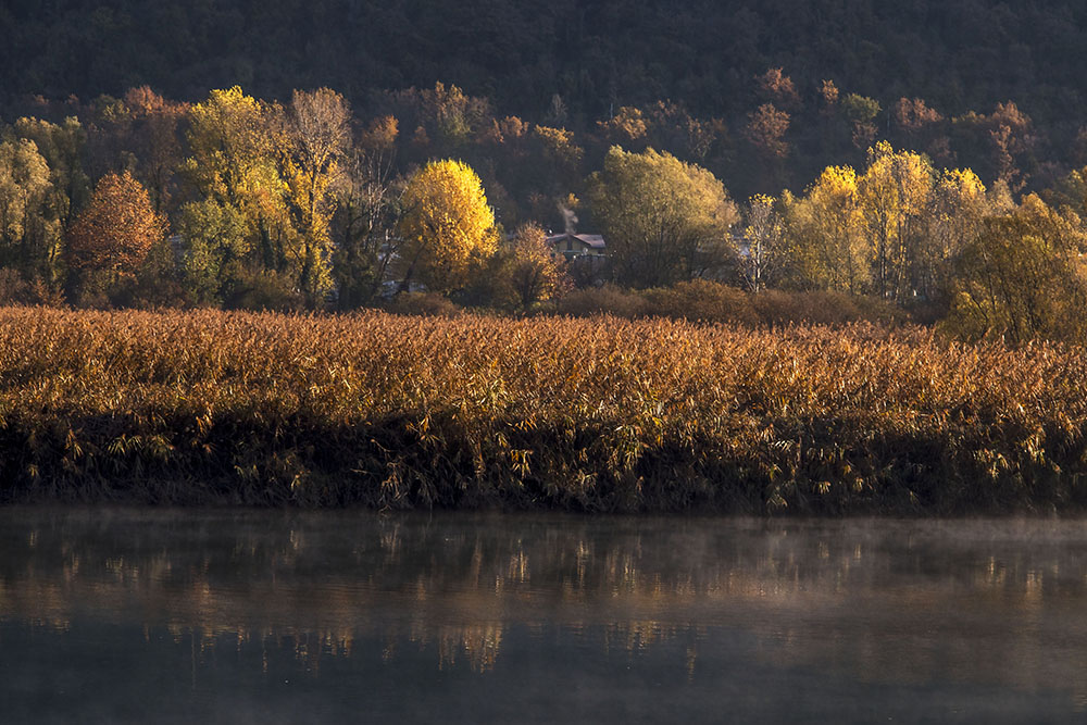 Manca un po' l'atmosfera eterea fatta di colori tenui,silenzi luci soffuse che spesso ci regali,ma questi colori così ricchi ,sfumature d'oro e di rame che profumano di autunno non sono certo meno piacevoli. Mi piace Ciao