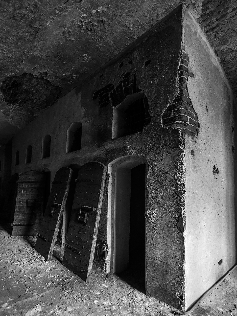 Un gran bn ed una radente luce che sottolinea la materia di questa triste struttura che neanche le porte divelte riescono a mitigarne l'orrore.La costrizione della composizione richiama l'angustità delle celle e la deformazione prospettica del forte grandangolo le forzature psicologiche che ne derivavano.Complimenti!  _________________ Sergio Demitri https://www.flickr.com/photos/124946035@N02/ |