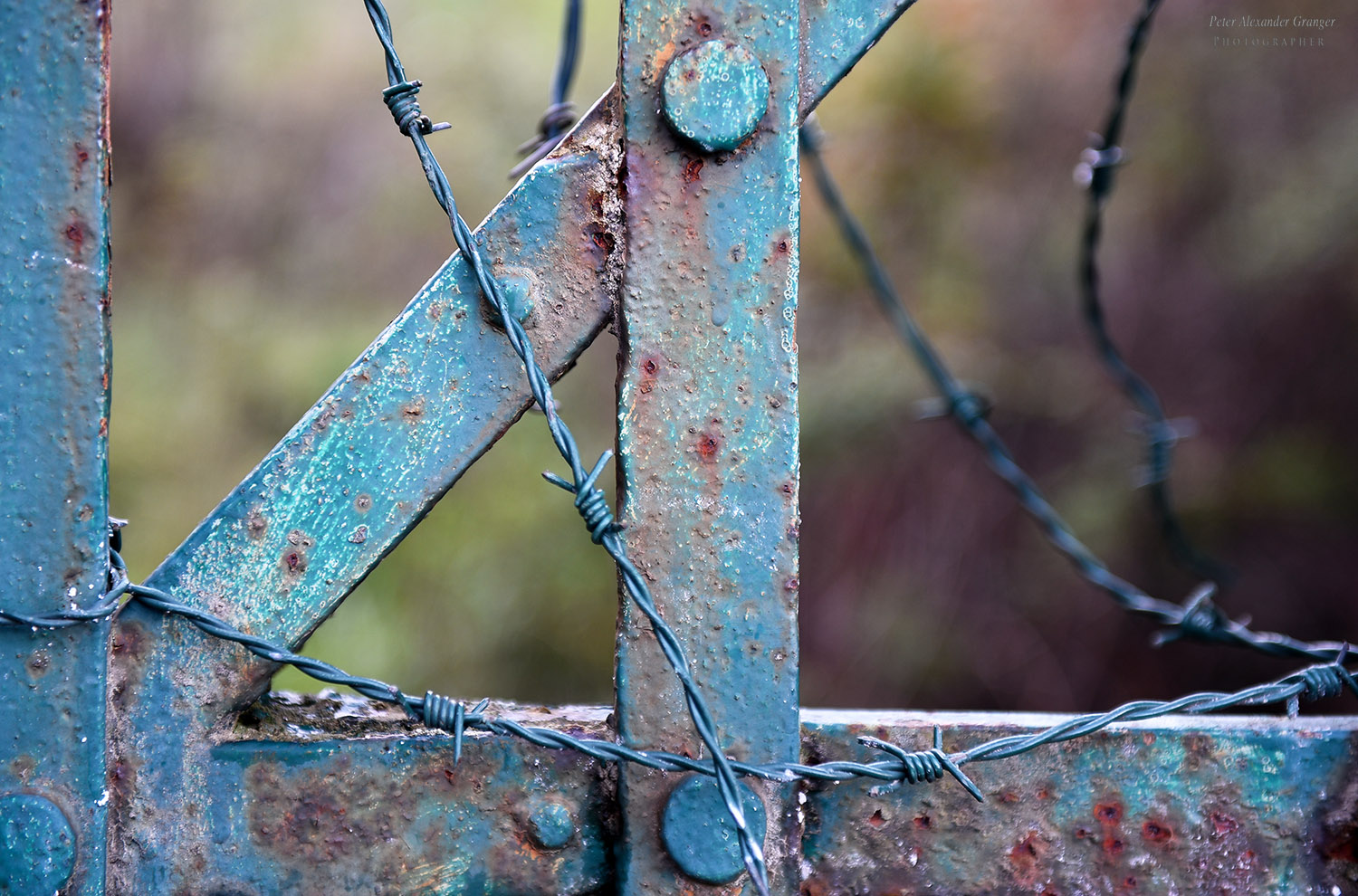 Ottima resa per questo abbinamento di azzurri e vinaccia... in varie durezze, fra filo spinato , vernici, e uno sfondo ben screziato. Ottimo infatti il morbido boken... mentre forse mi manca un poco di matericità, una leggera spinta nel dettaglio, sul primo piano.. ferroso.