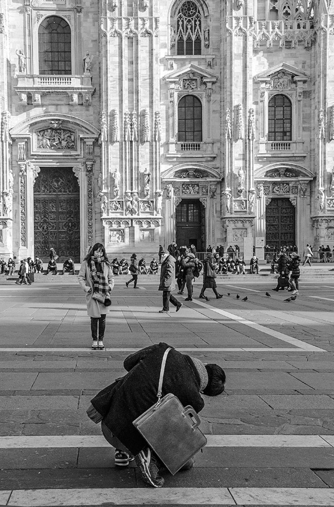 Foto ricordo con contorsione... deliziosa la ragazza, superlativo il fondale, ben fatta la foto, conversione in bn che mi piace molto. Ciao.