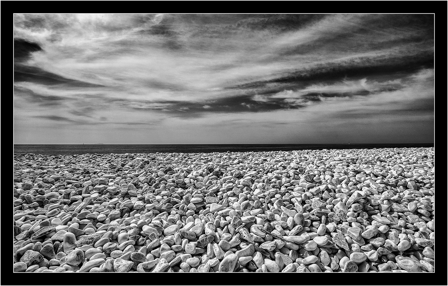 | VEDO...un'immagine senza tempo. Una distesa di sassi bianchi che insieme al cielo guida lo sguardo verso l'orizzonte marino,verso la meta. Vedo un'immagine che evoca la passione e vedo una barca all'orizzonte ,passione anch'essa ed un'isola . ASCOLTO...la musica dei ciottoli sotto i passi, il silenzio,il suono del vento e lo sciabordio ,dell'acqua, il click della fotocamera. Ascolto ciò che l'autore vuole raccontare con la sua visione, le sue parole profonde non pronunciate ma fatte immagine. RESPIRO...i pensieri e li unisco ai miei,struggenti per esser da troppo tempo lontana...dal quel mare,dal suo profumo,dalla sua voce,dal suo tocco leggero,dal suo sapermi trasportare oltre. AMO ...nell'apparente disordine dei sassi candidi troverne uno, al centro del frame, a forma di cuore ed allora amo anche che un minuscolo particolare voglia trasmettere idelamente tutto l'amore per il mare,qualunque mare,perchè in esso è racchiuso un sentire...antico, dolce e libero. Il B/N molto giusto per tutto ciò. Un'altra bella prova che scatena la mia fantasia che corre verso sponde lontane da me. Ciao Bruno che vive sul e CON il mare , Anna |
