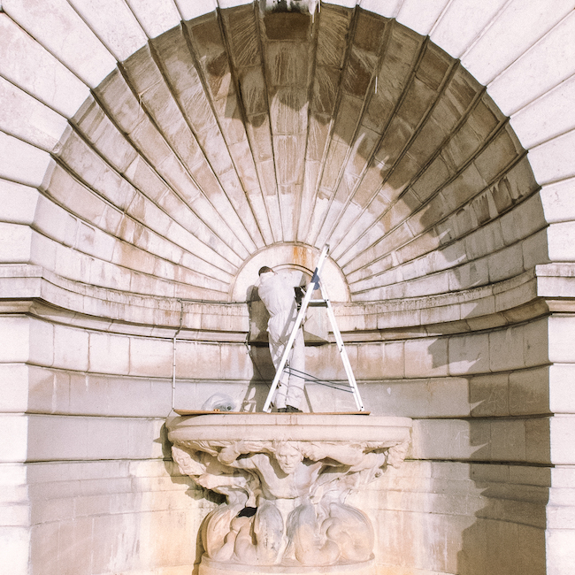 Buongiorno Sandrino, bel momento colto con una spruzzata di ironia a riguardo della povera cariatide che deve già sopportare di suo il peso della pietra.