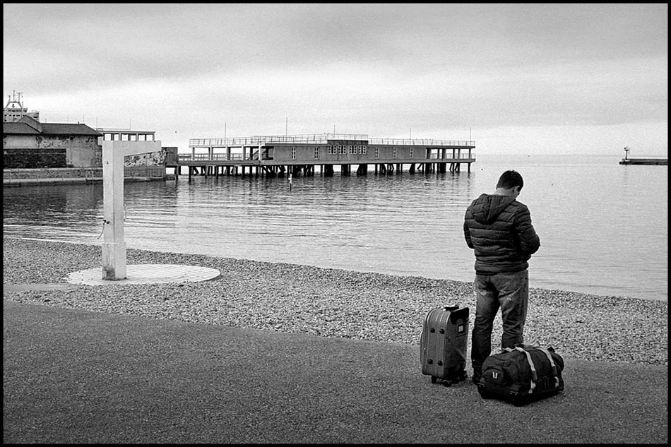 Il racconto nostalgico e bianconerizzato di un viaggio che sta per compiersi. Il mare come amico a salutare il viaggiatore. Mi piace  |